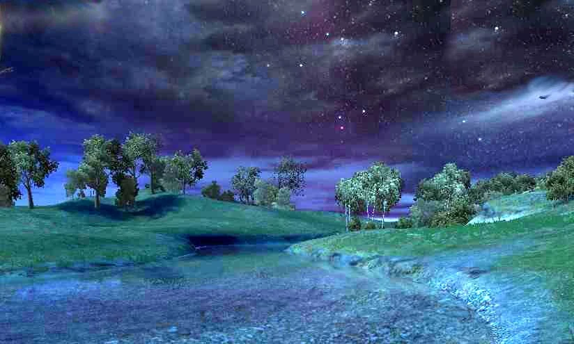 Flussufer in den Feldern, Nachts