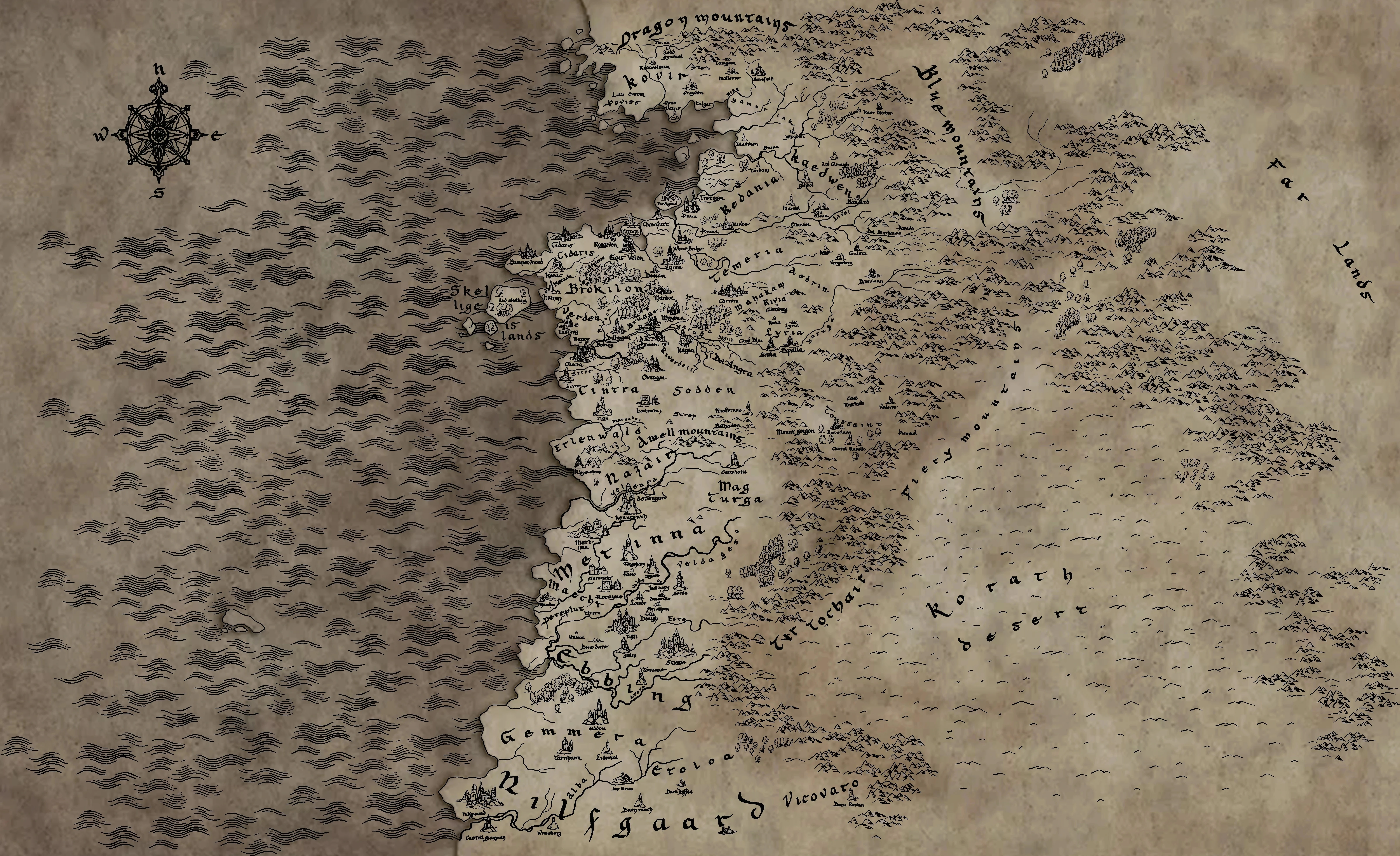 Zur genauen Geographie des Kontinents mit seinen Königreichen und Regionen gibt es keine offizielle Karte, da Andrzej Sapkowski anders als J. R. R. Tolkien, Michael Moorcock oder G. R. R. Martin kein entsprechendes Kartenmaterial selbst erstellt hat. Die erste Karte wurde von Betreibern der Sapkowski-Website in Zusammenarbeit mit dem Autor selbst um 1996, zur Zeit der Veröffentlichung von "Feuertaufe", erstellt, wurde aber nie für die Veröffentlichung in den Büchern verwendet.