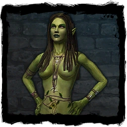 Ebenso wie die anderen Dryaden verzichtet sie auf Kleidung und trägt lediglich Armreifen und Halskette.