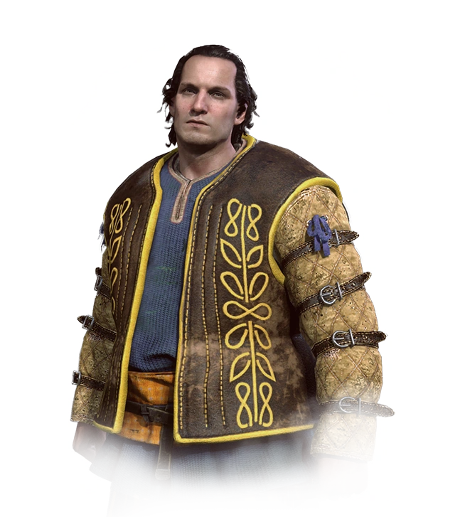 - Im eigentlichen Spiel verwendet er ein völlig anderes Gesichtsmodell als das im Journaleintrag gezeigte, zum Beispiel fehlt der Bart.