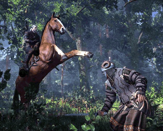 In The Witcher führt Geralt auf einer Zeichnung am Ende des Spiels ein Pferd an den Zügeln. Dies ist der einzige Hinweis im Spiel, dass Geralt ein Pferd besitzt.
