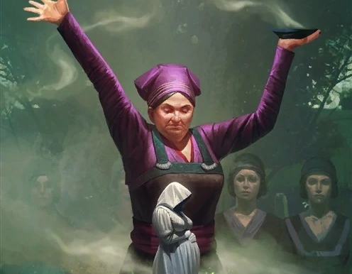 Yennefer lernte Sigrdrifa im Sommer 1267 kennen und verdient sich den Respekt der Priesterin, indem sie eine schwangere Frau mit einem Heilzauber davor bewahrt, eine Fehlgeburt zu erleiden.