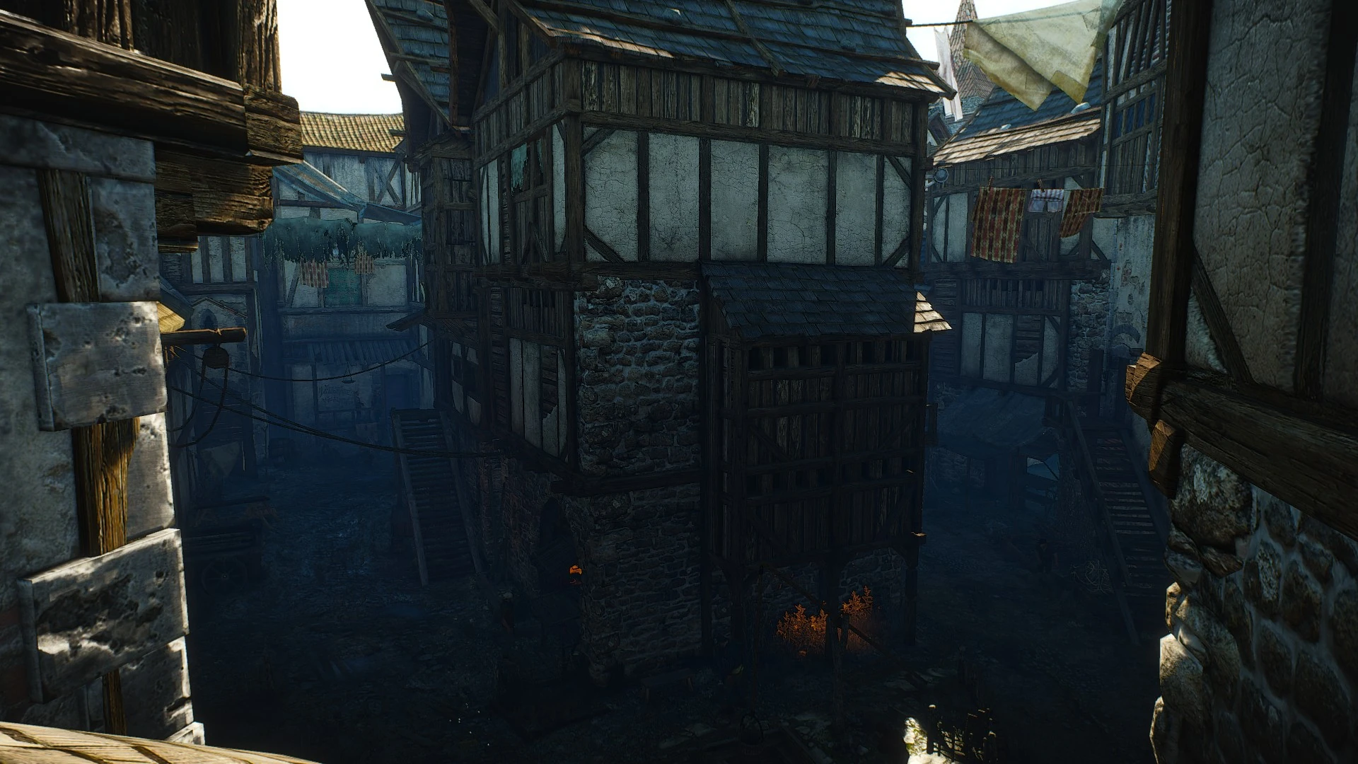 The Stinkende Hecke is an enclave within the district of Spitzenhall in Novigrad. It is ruled by the King of Beggars, Francis Bedlam. There, magic users have found sanctuary from the ongoing witch hunt. To enter the area for the first time, Geralt can pay 50 , give the correct password or use Täuschung to gain entry.