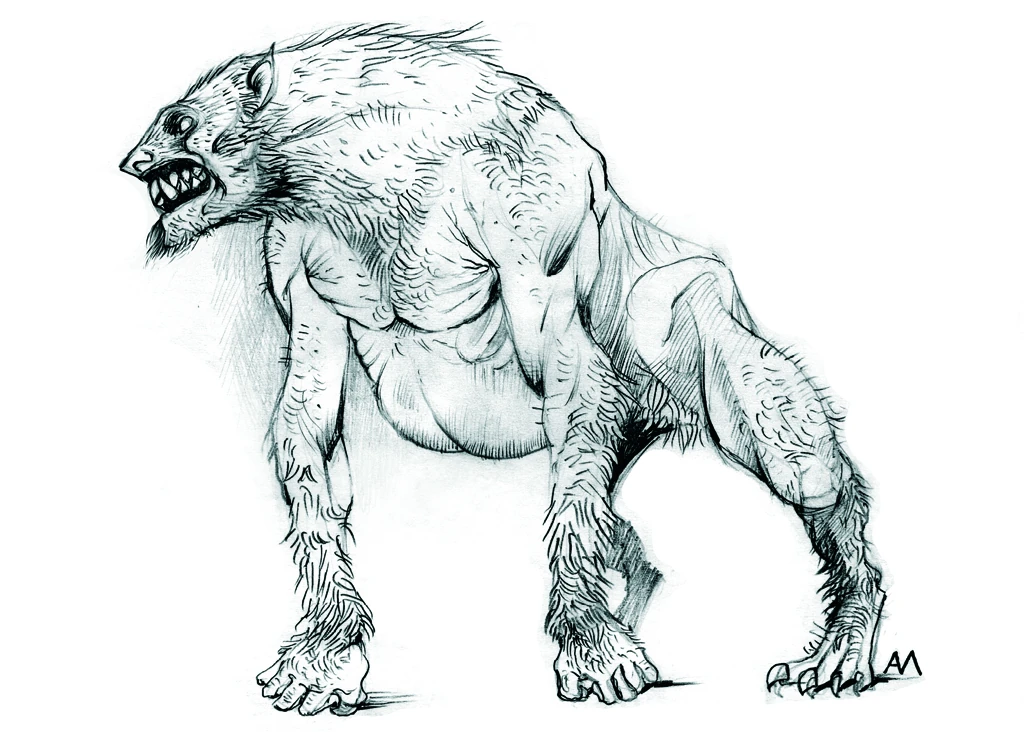 Zeichenentwurf eines Lykanthrops, der als Ausgangsbasis für den Werwolf diente
